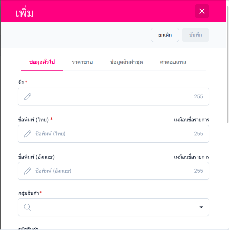 • กลุ่มสินค้า : ระบุกลุ่มสินค้า