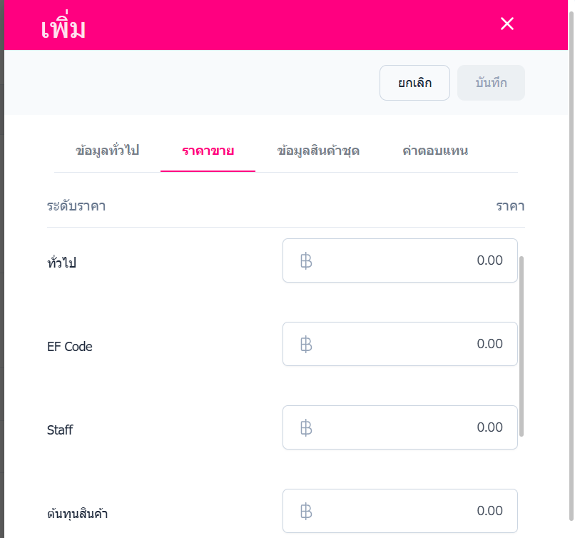สามารถเพิ่มรายละเอียดตามระดับ เช่น ทั่วไป ,ปกติ ,พนักงาน ,พิเศษ