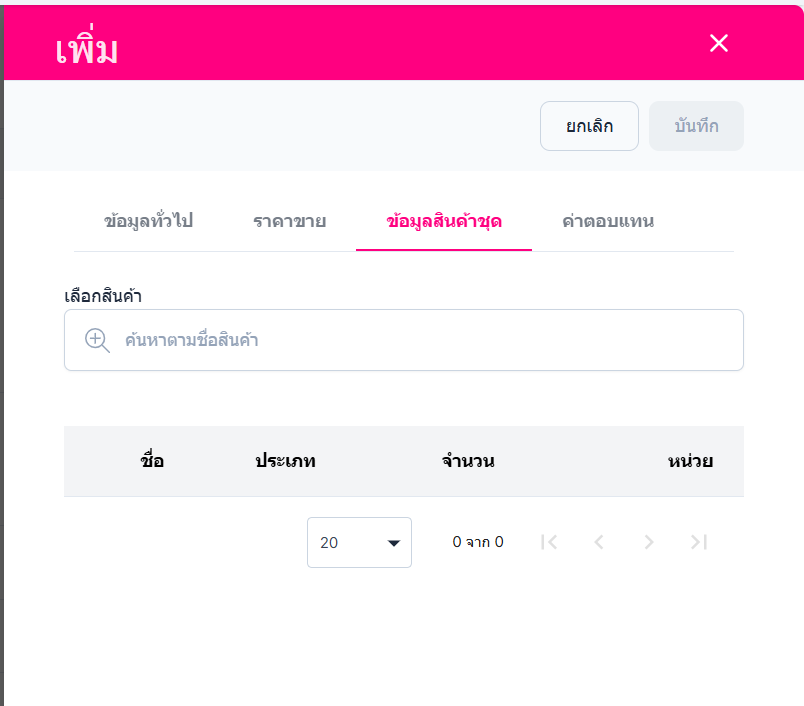 เมื่อผู้ใช้เข้าสู่หน้ารายการชุดกดคลิกปุ่มเพิ่ม จากนั้นระบบจะให้กรอกข้อมูล ผู้ใช้งานจะเข้าสู่หน้าเพิ่มการบริการ สามารถเพิ่มรายละเอียดได้ดังนี้