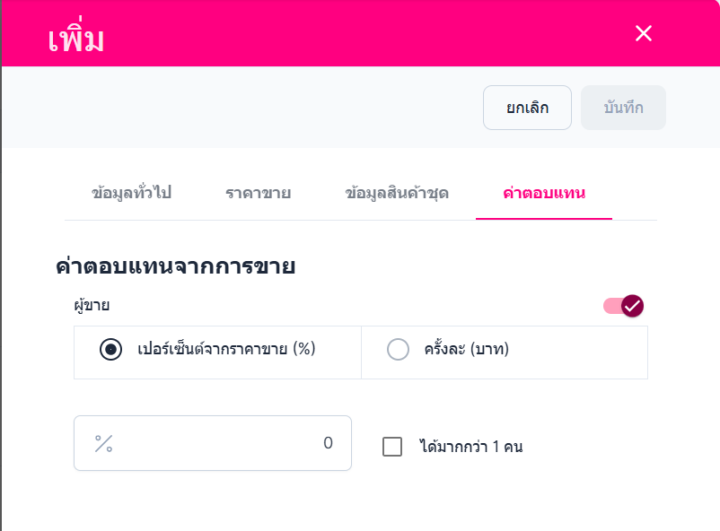 • สามารถแก้ไข/ปิดการแบ่งค่าตอบแทน หรือกำหนดเปอร์เซ็นค่าตอบแทนได้