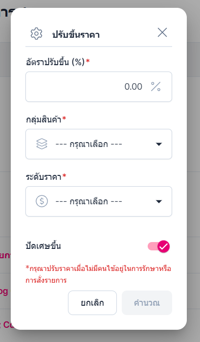 • โดยสามารถแก้ไขเป็นเปอร์เซ็น และเลือกระดับราคาที่จะแก้ไขได้