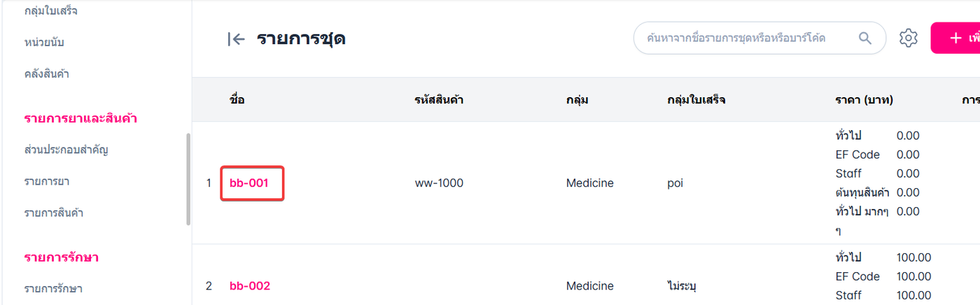 ช่วยให้คุณรวมรายการสินค้า ยา หรือบริการหลาย ๆ อย่างที่มักจะถูกใช้งานร่วมกันบ่อย ๆ เข้าด้วยกันเป็นรายการเดียว เช่น ชุดทำแผล ชุดอาบน้ำ