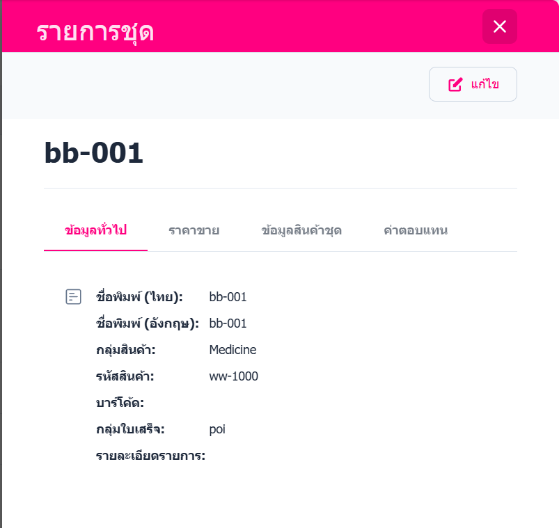 • จะเข้าสู่หน้าต่างแสดงรายละเอียดข้อมูลขึ้นมาเลือกที่ขวาบน "แก้ไข"