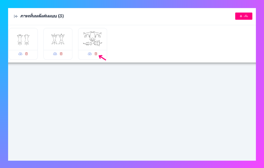 ระบบจะแสดงรูปวาดที่ผู้ใช้งานเพิ่ม ผู้ใช้งานสามารถลบรูปวาดต้นแบบได้