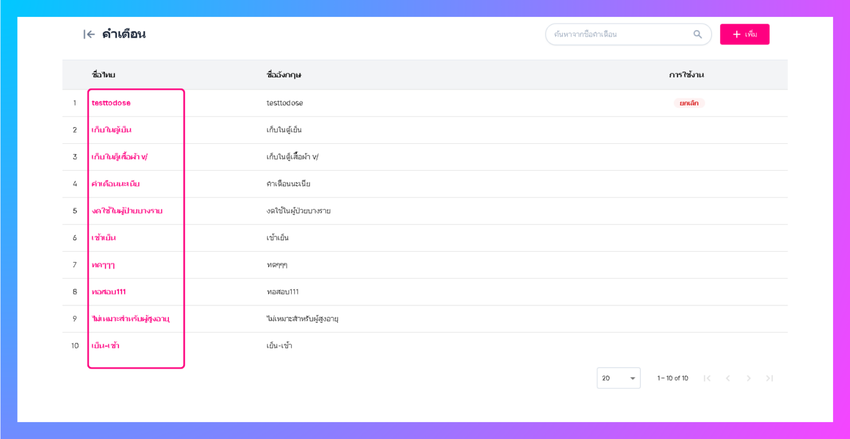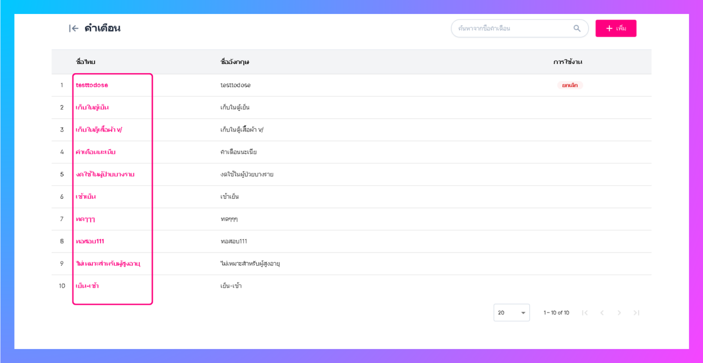 - ผู้ใช้งานเลือกคำเตือนได้ที่ชื่อ