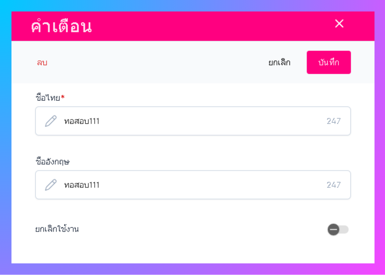 - ผู้ใช้งานสามาารแก้ไขข้อมูลคำเตือนได้