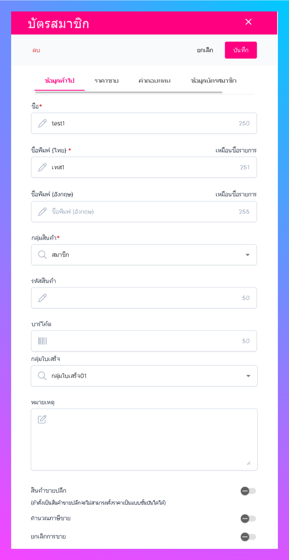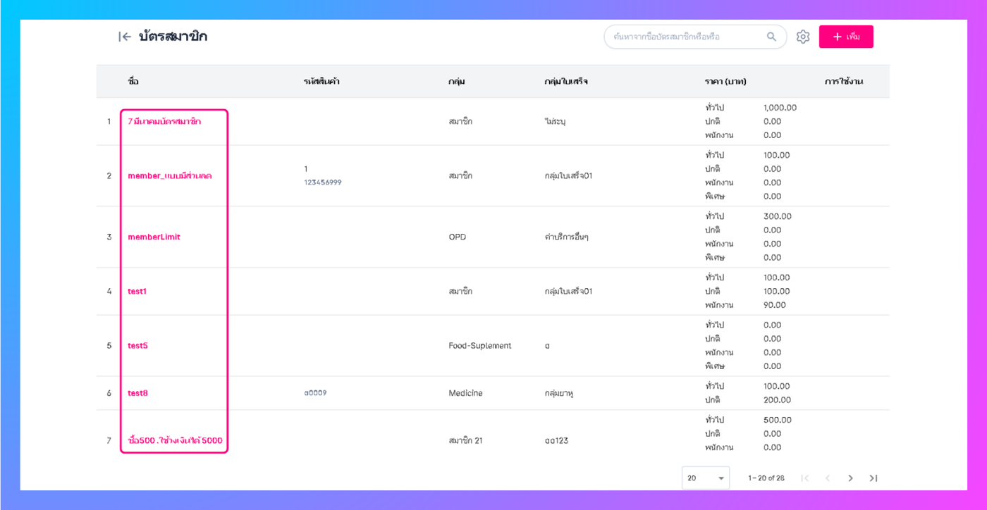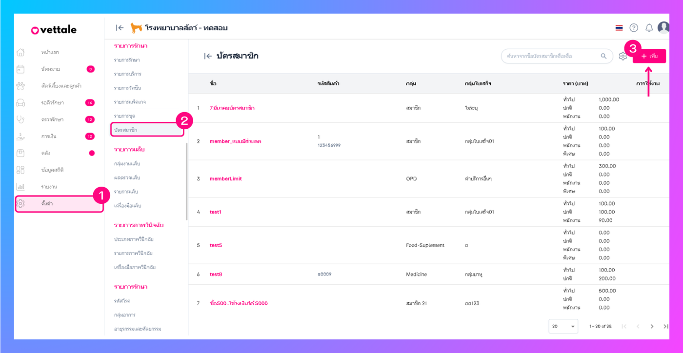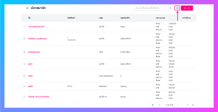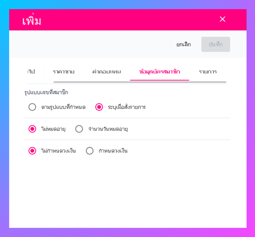 ไปที่การตั้งค่า > เลือกเมนูบัตรสมาชิก > คลิกเพิ่ม