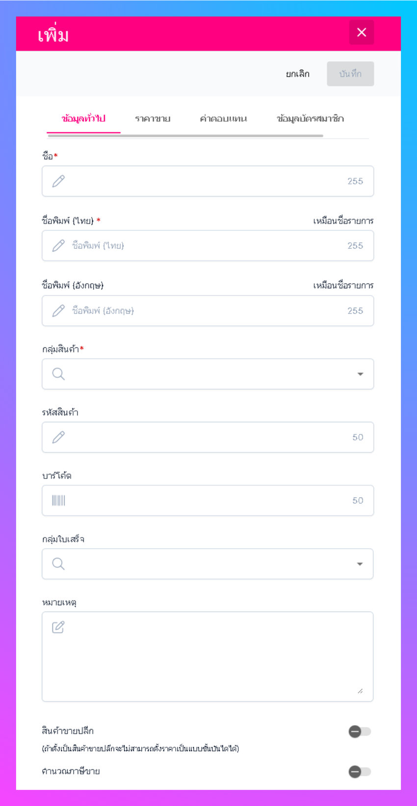 • กลุ่มสินค้า : ระบุกลุ่มสินค้า