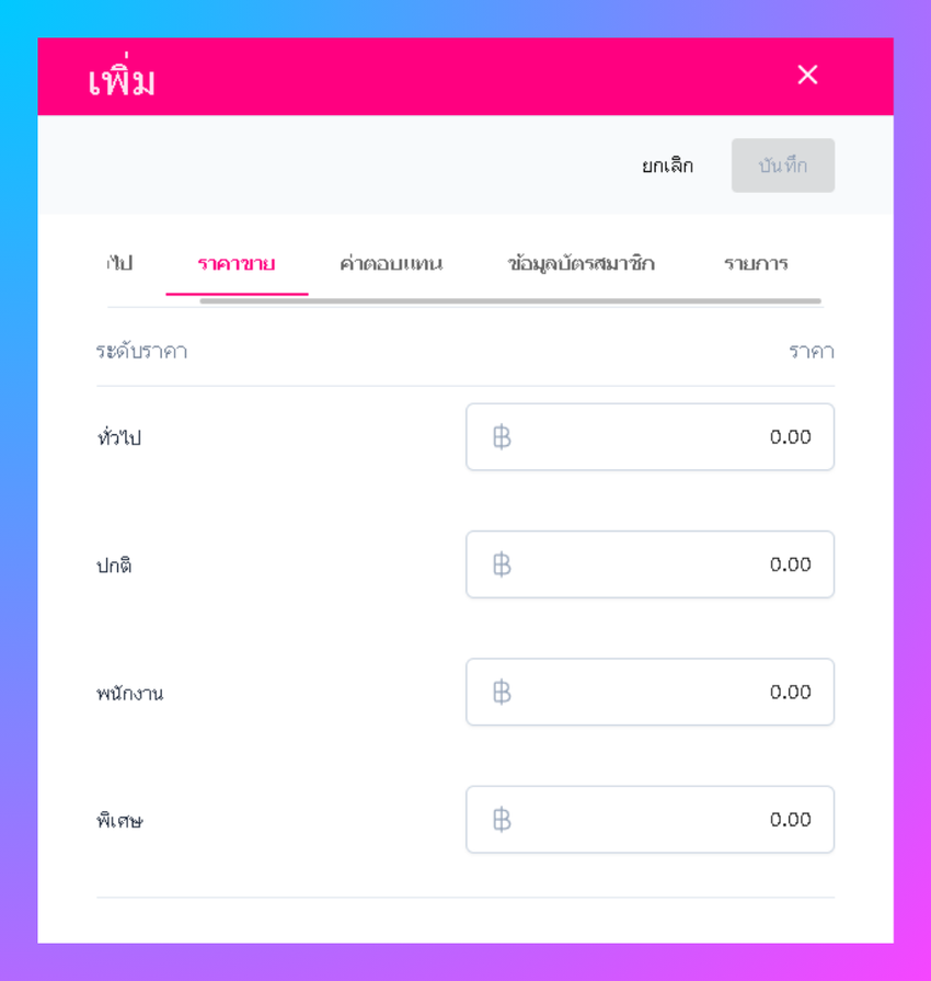 สามารถเพิ่มรายละเอียดราคาตามระดับ ทั่วไป ,ปกติ ,พนักงาน ,พิเศษ