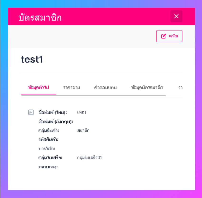 เมื่อผู้ใช้อยู่ในหน้าบัตรสมาชิกคลิก เลือกบัตรสมาชิกที่ต้องการแก้ไข