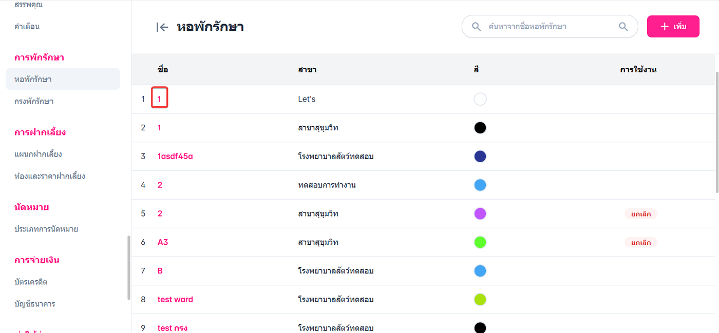 เมื่อผู้ใช้อยู่ในหน้าหอพักรักษา ให้ผู้ใช้เลือกรายการที่ต้องการยกเลิก