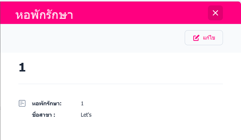 ระบบจะเข้าสู่หน้ารายละเอียดหอพักรักษา กด "แก้ไข"