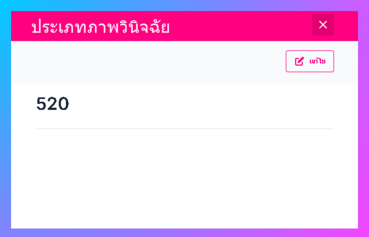 ผู้ใช้งานจะเข้าสู่หน้ารายละเอียดประเภทภาพวินิจฉัย ให้กดแก้ไขมุมบนขวาเพื่อทำการแก้ไข
