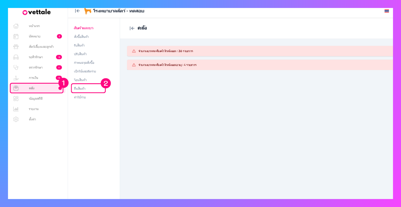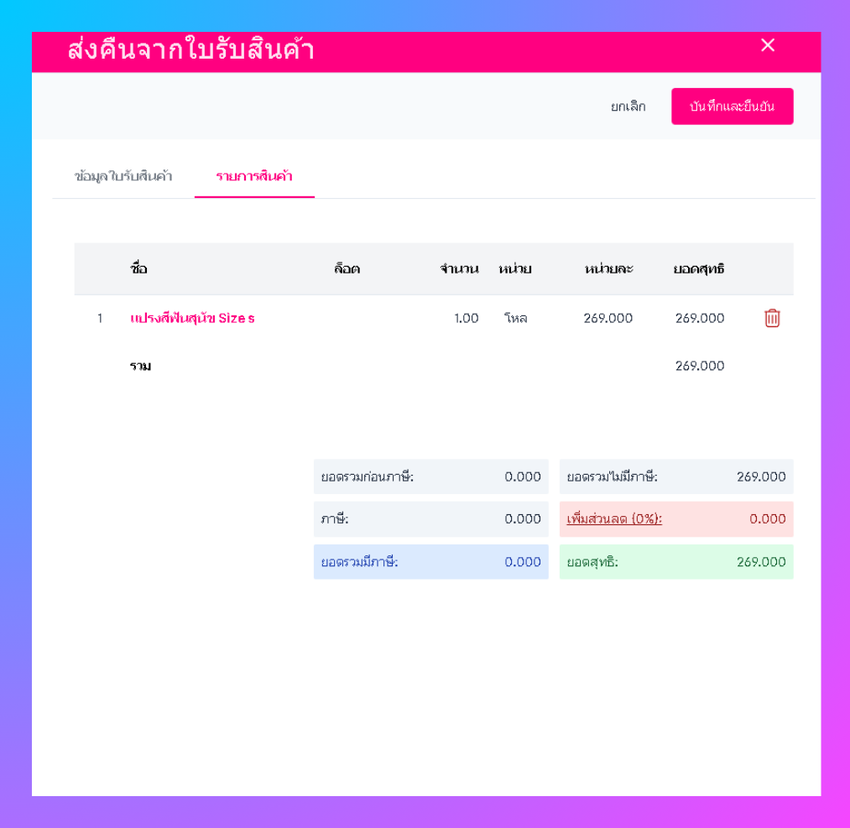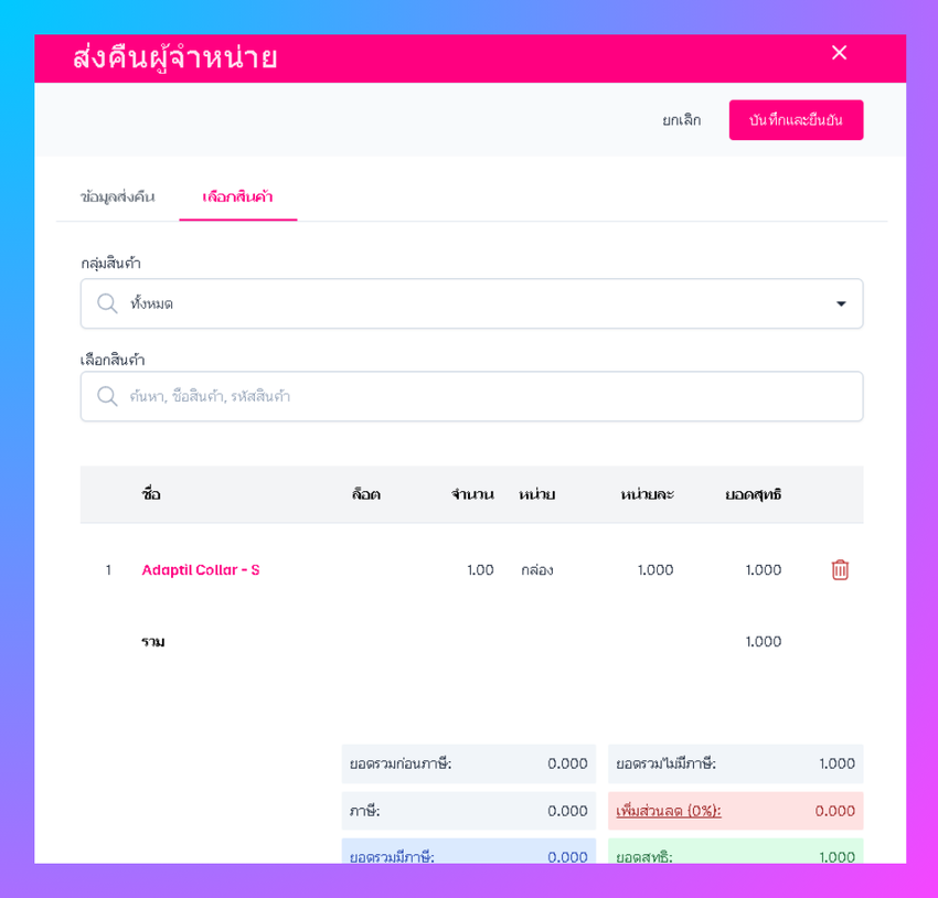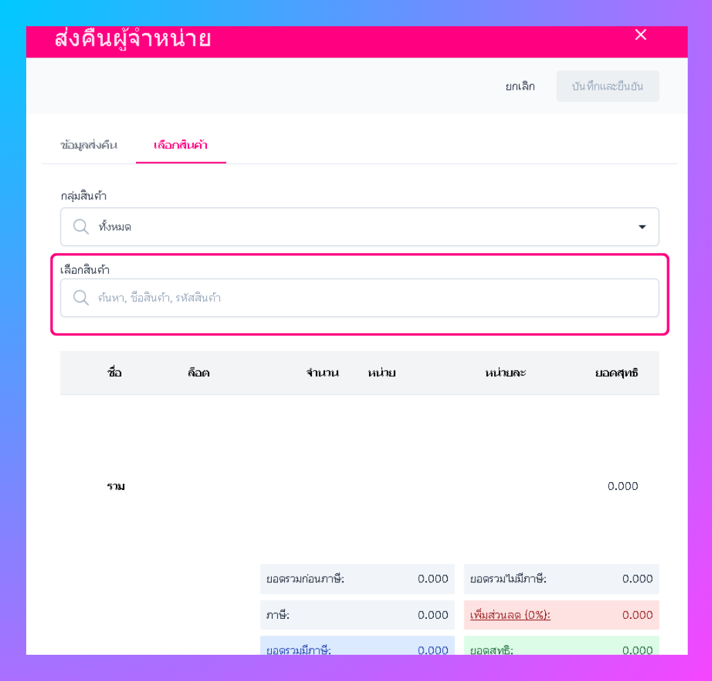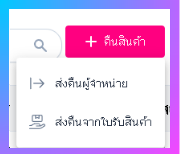 หากผู้ใช้งานต้องการส่งคืนสินค้า ทำได้โดยการไปที่เมนูคลัง > คืนสินค้า