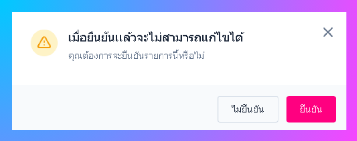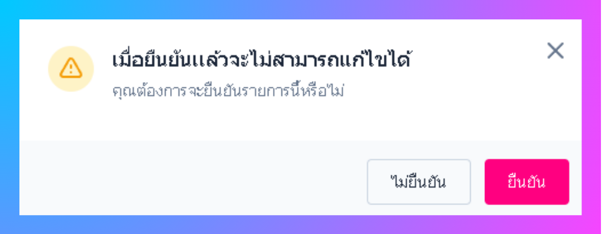- ระบบจะแสดงหน้าต่างยืนยันเอกสาร ให้ผู้ใช้งานกดปุ่มบันทึกและยืนยัน