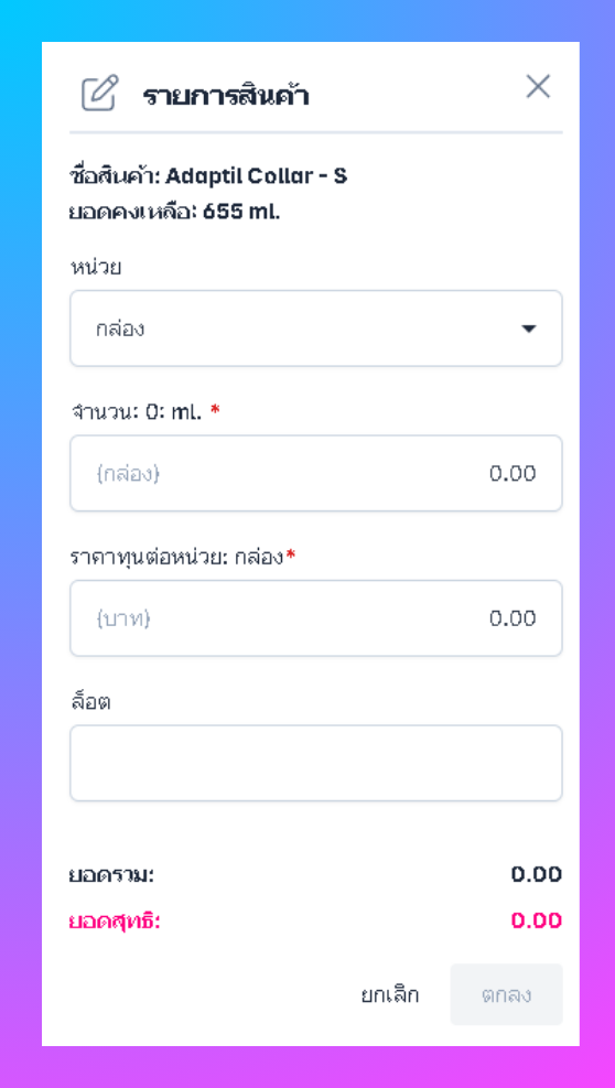 - ผู้ใช้งานสามารถกรอกจำนวน ราคา และล๊อต