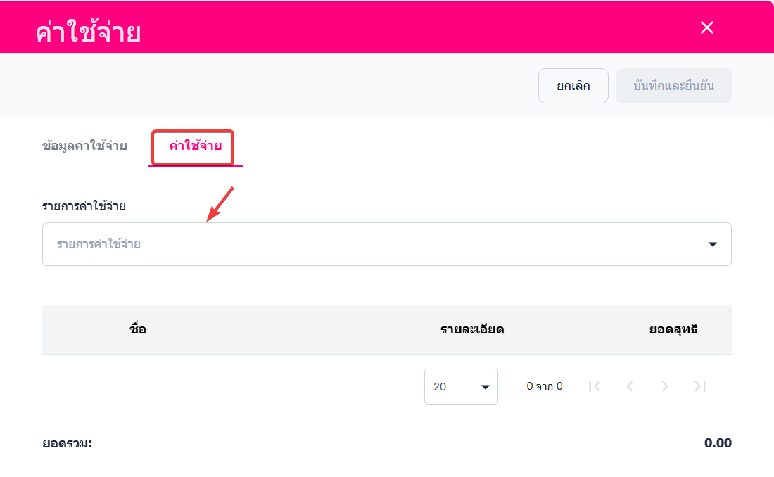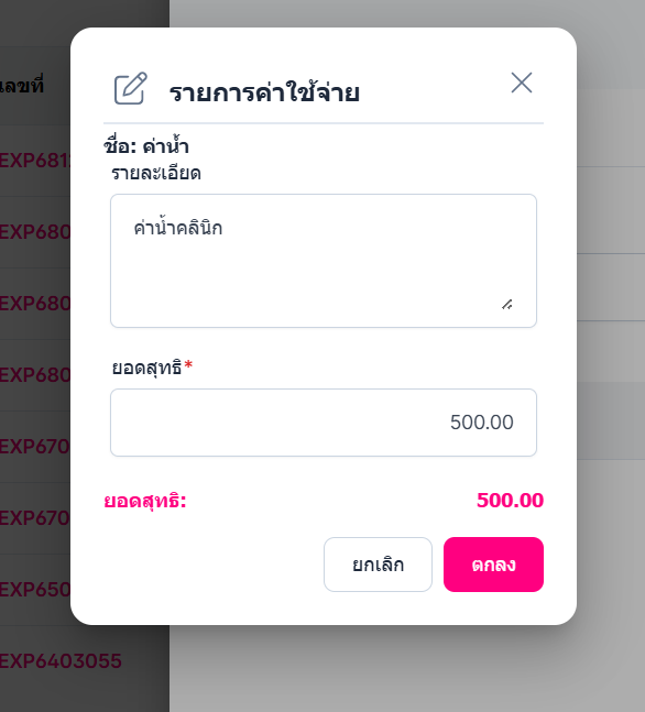 • กรอกรายการค่าใช้จ่าย ที่ผู้ใช้ได้มีการตั้งค่าใชจ่ายนั้นไว้ในการตั้งค่าค่าใช้จ่าย