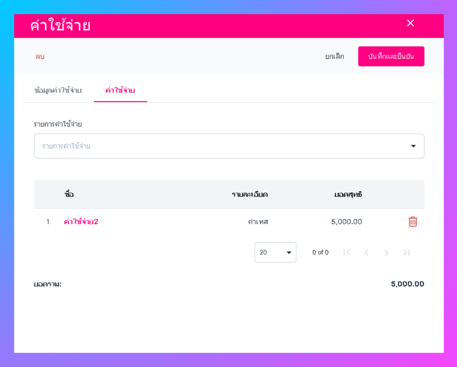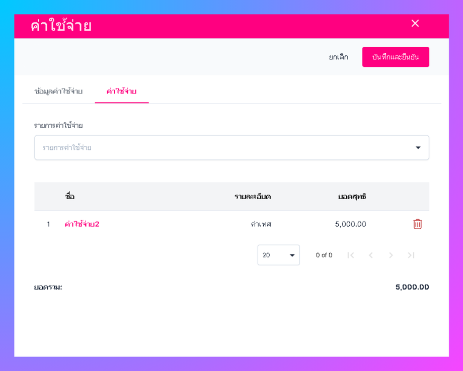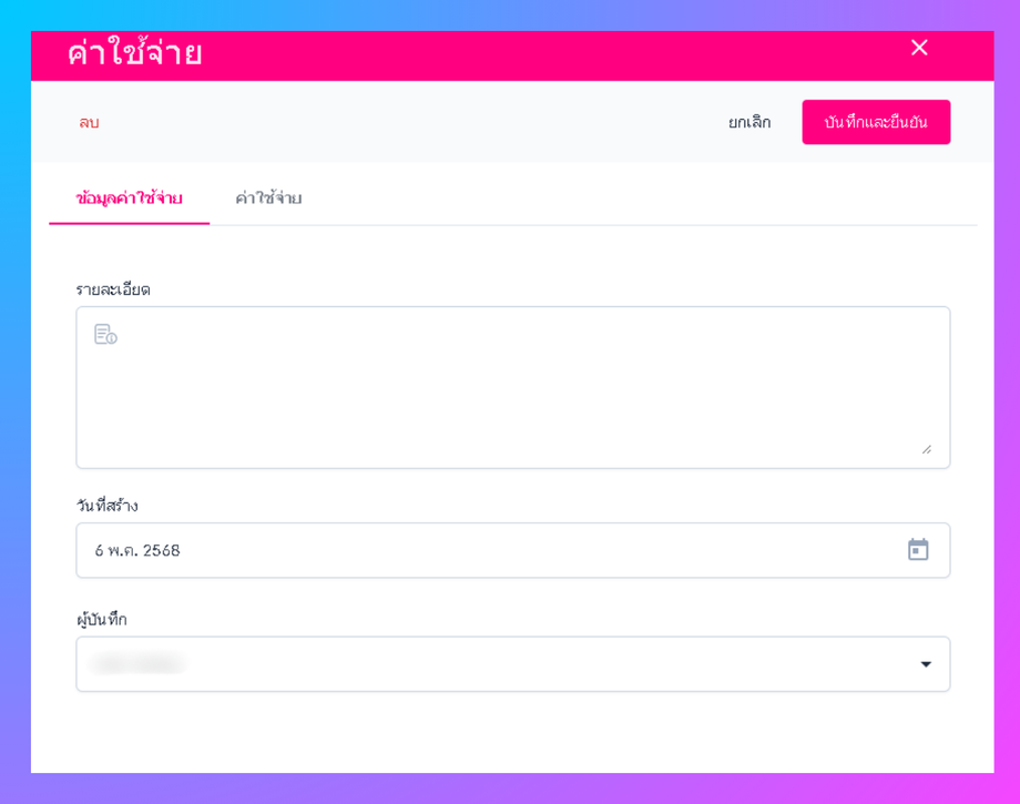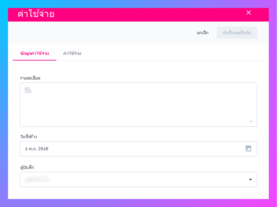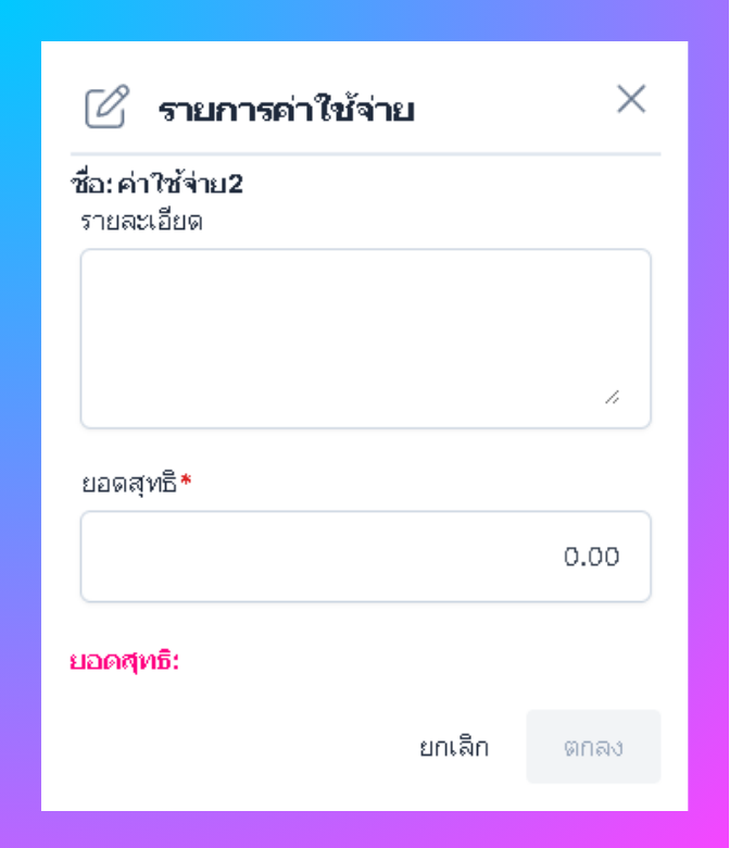 • ระบบจะแสดงหน้าต่างกรอกข้อมูลค่าใช้จ่าย