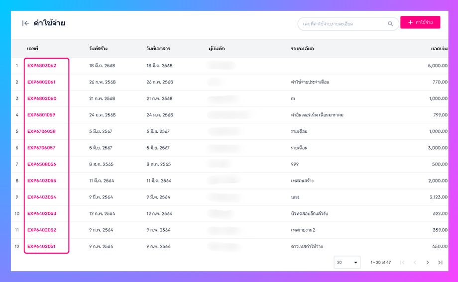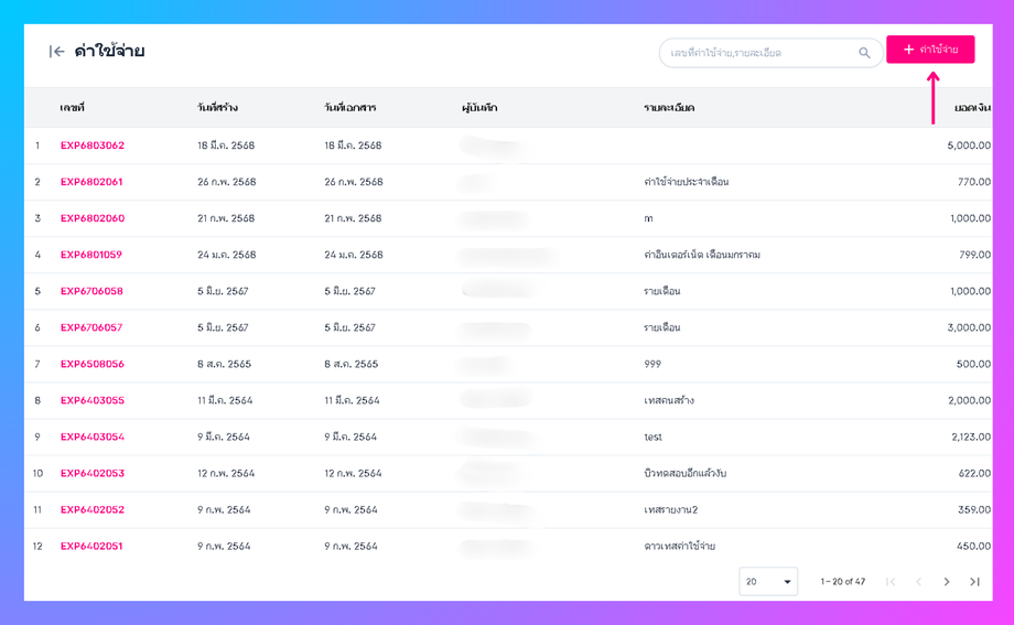 • ผู้ใช้งานจะเข้าสู่หน้าค่าใช้จ่าย