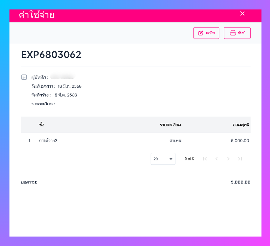 • ระบบจะเข้าสู่หน้ารายละเอียดค่าใช้จ่าย ให้กดแก้ไข