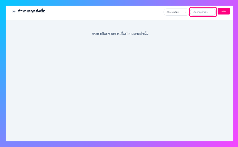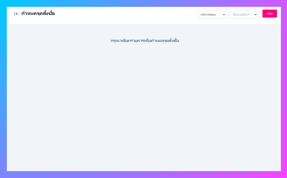 • ผู้ใช้งานจะเข้าสู่หน้า กำหนดจุดสั่งซื้อ